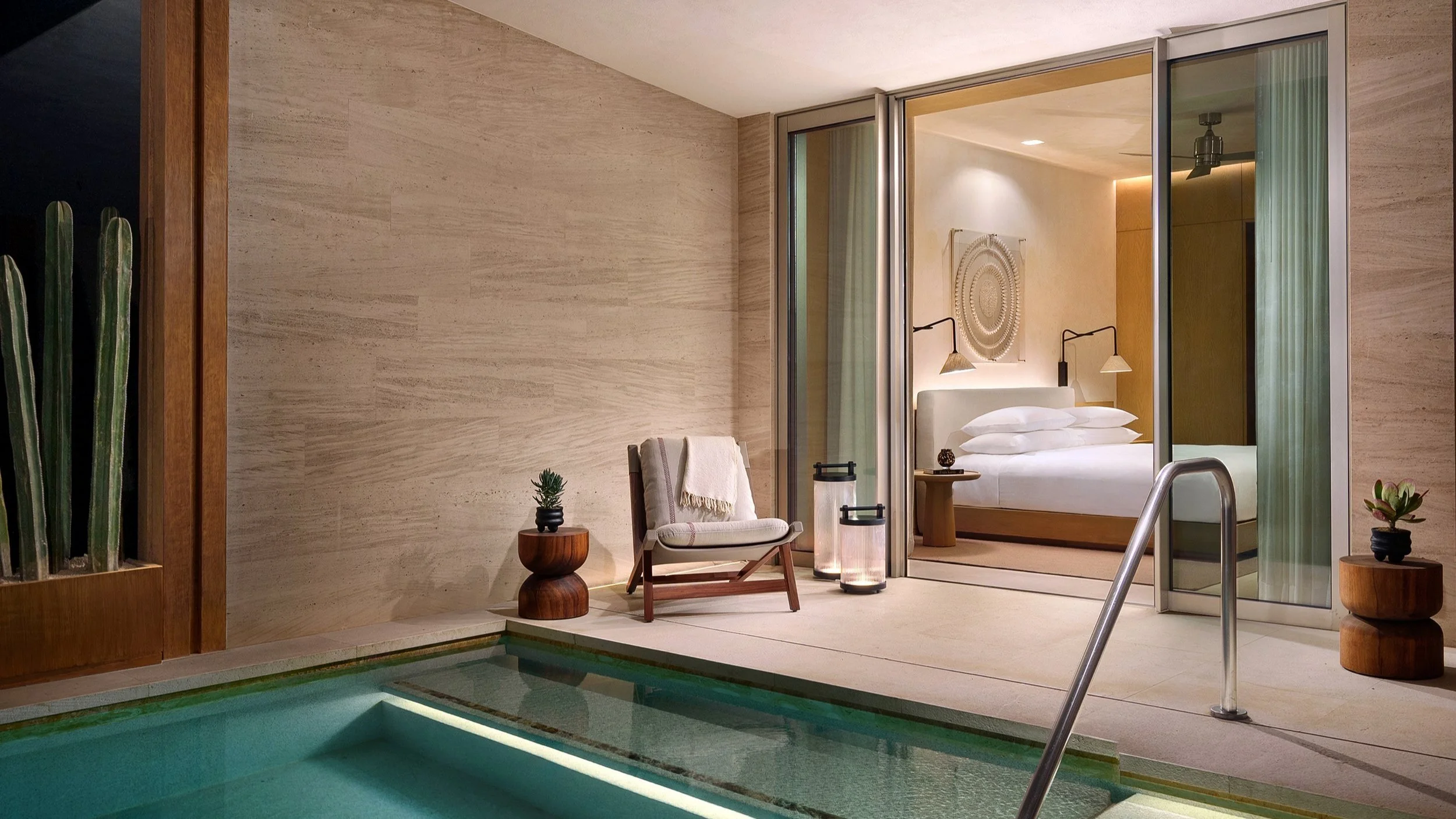 This spring, the Park Hyatt Los Cabos at Cabo Del Sol will mark Park Hyatt's Mexican debut. The sleek design, which we'd term desert contemporary, is a departure from many neighbors - sandy hues take centerstage both indoors and out, offset by pops of terra cotta and landscaping dotted with cacti. The five pools and 59,000 square foot fitness & wellness space mean this is a place to stay a while. And if you're here for the food, we have good news - the outlets will include a southern Mediterranean spot, and a Mexican restaurant where chefs will incorporate their favorite recipes from their grandmothers. Neighboring Ánima Village will house galleries, multiple restaurants, and luxury retailers, making the experience all the more comprehensive. | View the hotel
